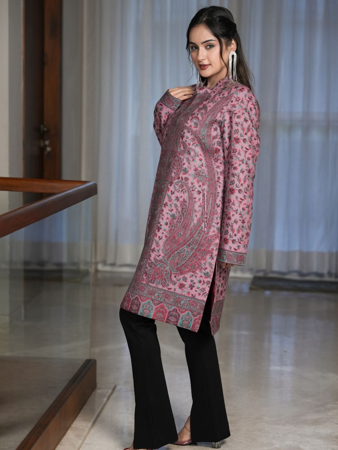 • Kurta Inspired kaani coat: Kurta Inspired traditional kaani pattern for a sophisticated and timeless look.