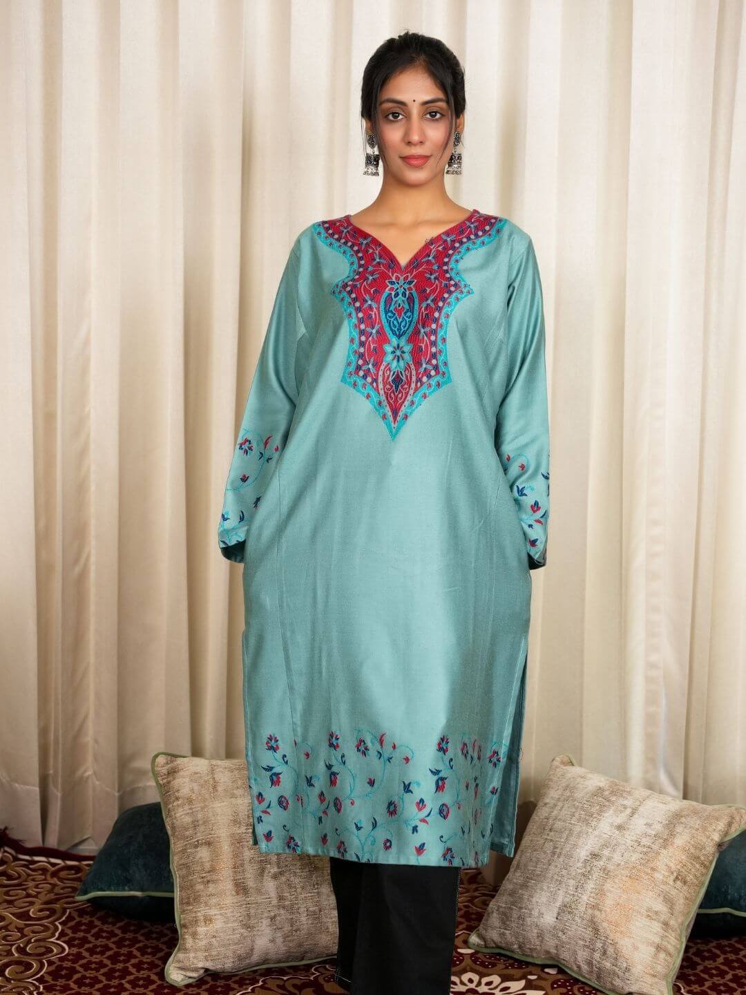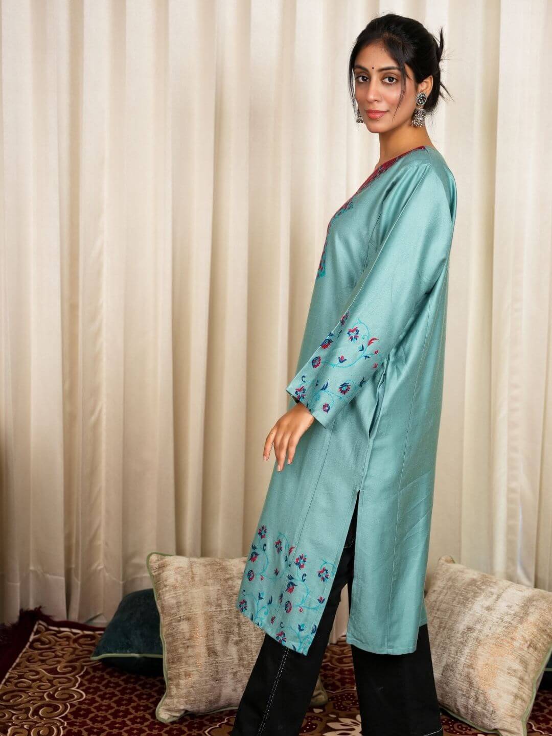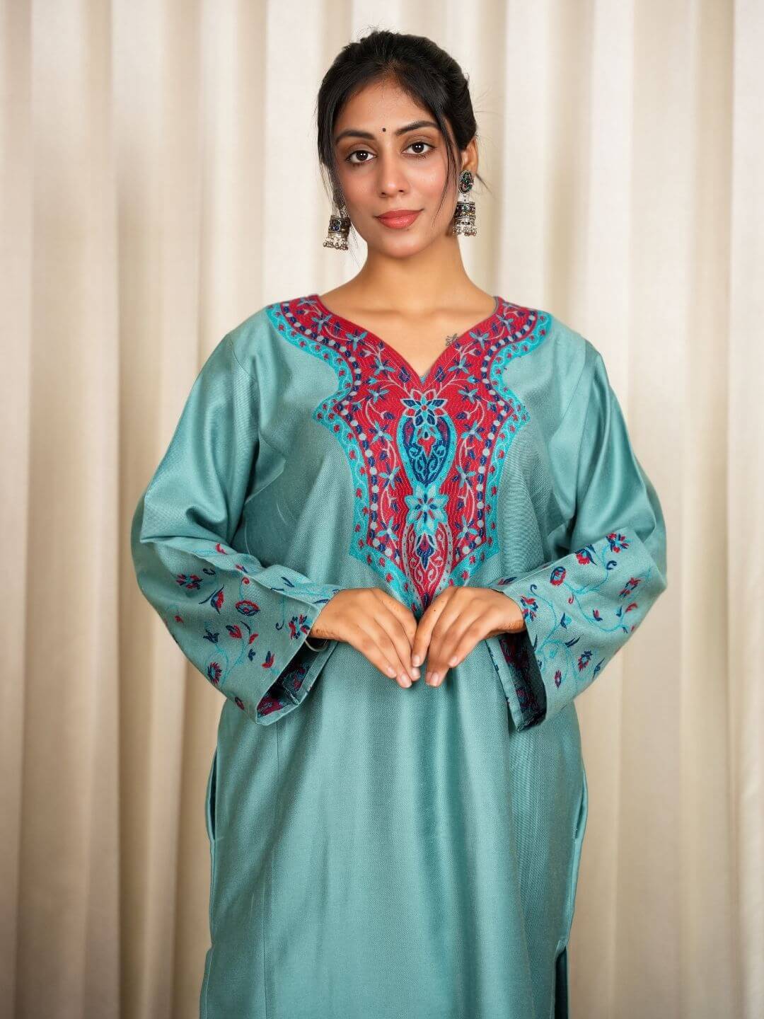 • Luxurious Zari Embroidery: Intricate shimmering accents enhance the elegance of the design, giving it a touch of traditional Kashmiri artistry.