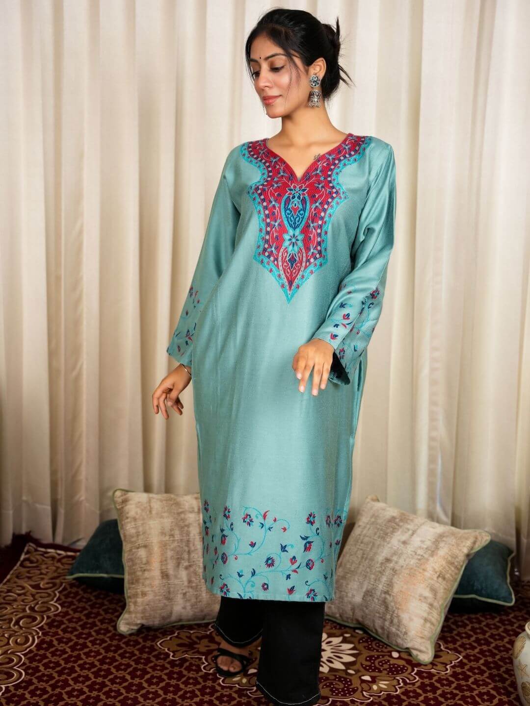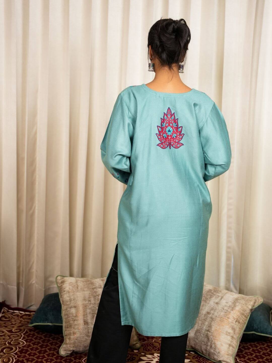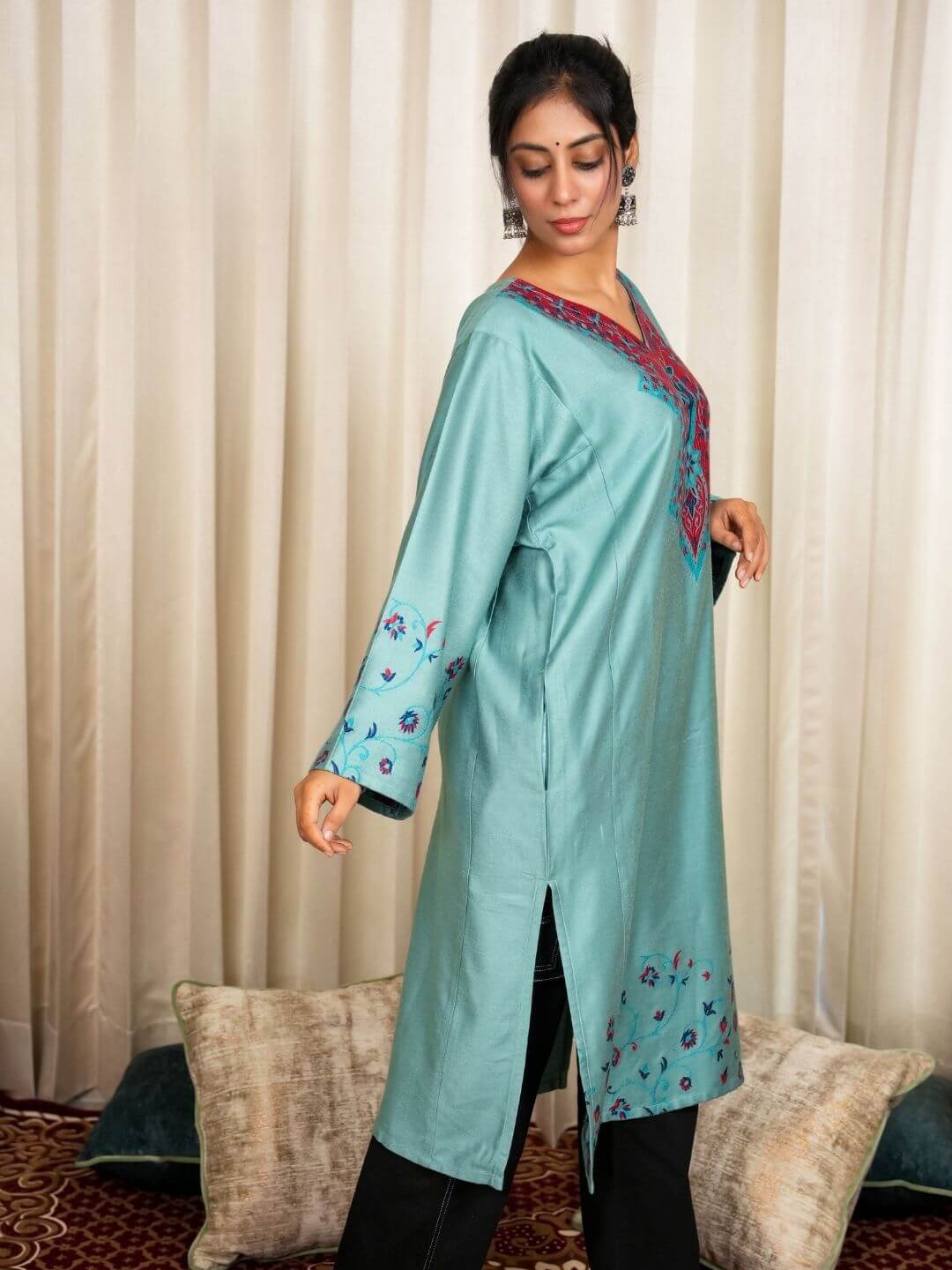 • Luxurious Zari Embroidery: Intricate shimmering accents enhance the elegance of the design, giving it a touch of traditional Kashmiri artistry.