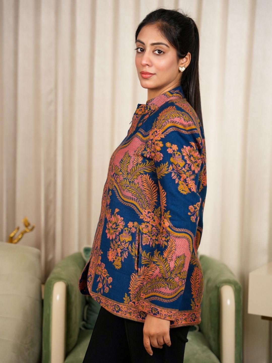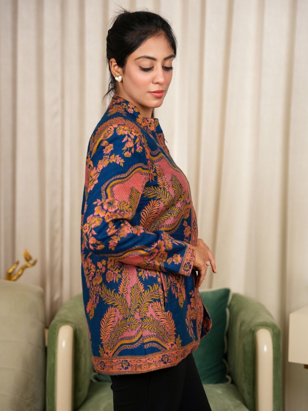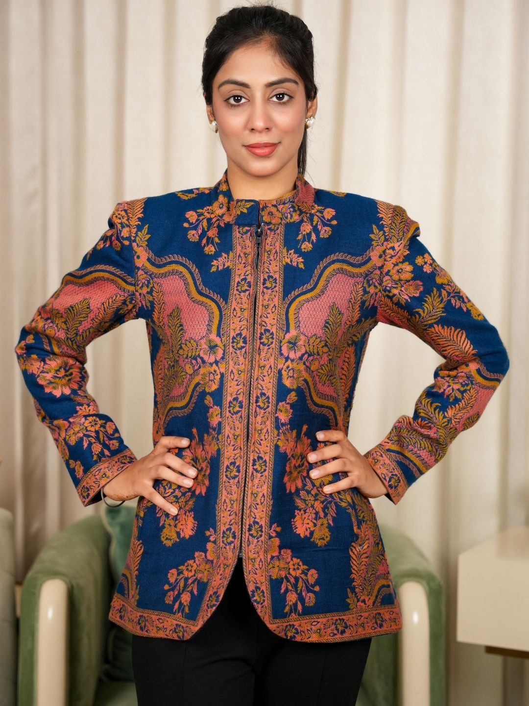 Experience the perfect blend of tradition and contemporary style with our Navy Colored Traditional Jacket. This striking piece features classic elements enhanced by modern design details, making it a versatile addition to any wardrobe.